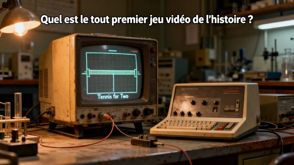 La réponse varie selon les définitions, mais Tennis for Two, créé en 1958 par le physicien William Higinbotham, est souvent cité comme le premier jeu conçu uniquement pour le divertissement, affichant une physique de balle réaliste sur un écran d’oscilloscope.